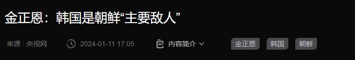 2024年初,金正恩视察朝鲜重要军工厂时明确表示:“韩国对朝鲜一直采取对抗政策,把韩国定为朝鲜最敌对国家的历史时期已经到来” ,金正恩强调:朝方不会在朝鲜半岛单方面制造大事变,但也不回避战争。